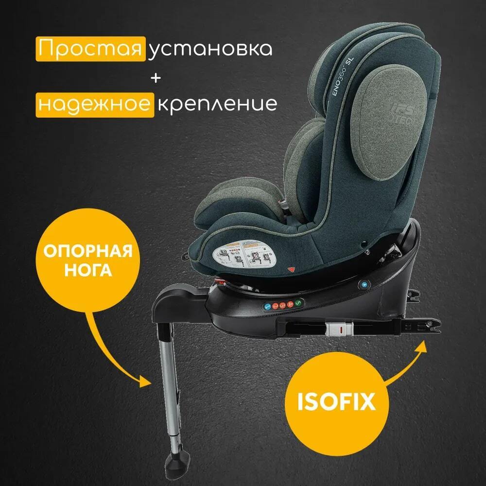 ENO360 SL можно установить как при помощи штатного ремня автомобиля и НОГИ, так и при помощи ISOFIX и ОПОРНОЙ НОГИ во всех возрастных группах.
